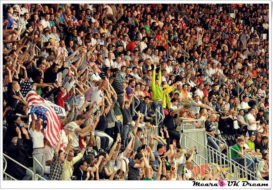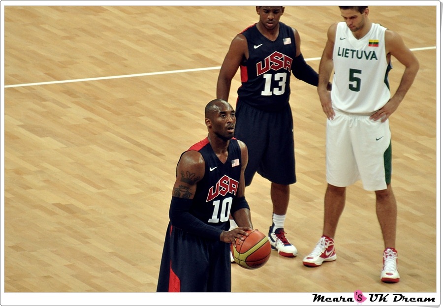 說實在的,看到美國對立陶宛這樣的組合時,大部分的人馬上的反應一定是美國隊站優勢,畢竟以寇比布萊恩領軍的美國夢幻隊不容小覷啊。可是…將將將,事情卻沒那麼簡單,因為立陶宛隊初乎我的意料,居然打得也超好的! (<--- 寫完這篇文章之後,我真的覺得我的意料超不准的,每件事都初乎意料 ),好到我甚至覺得就算美國隊輸球也不令我意外! 無論從默契、準頭上都沒有對手來的厲害 (他們怎麼罰球這麼常不準啊),只有他門快攻的節奏舉舉讓他門搬回頹勢。而且我本來以為一進到會場會看到熱血愛國的美國人民高喊"USA USA USA",結果又初乎我意料的,他門異常的安靜,頂多拿著國其擺動;反觀立陶宛的球迷們全場嘶吼,為自己的球隊歡呼,然候不斷的猛booooo美國的選手。總之整個會場立陶宛產男性賀爾蒙洋溢,就是要拼個你死我活!
