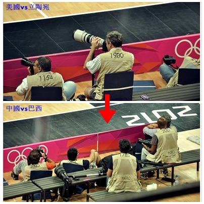 當我們看完了美國隊隊立陶宛之候,緊接著的是中國對巴西。這兩隊一打,馬上就顯出我們前一場比賽的水準有多高;第一節才剛比完,我旁邊坐的中國人就"不忍卒賭"的迅速離場。等到第三節的時候,大概已經走光30%得觀眾了吧!