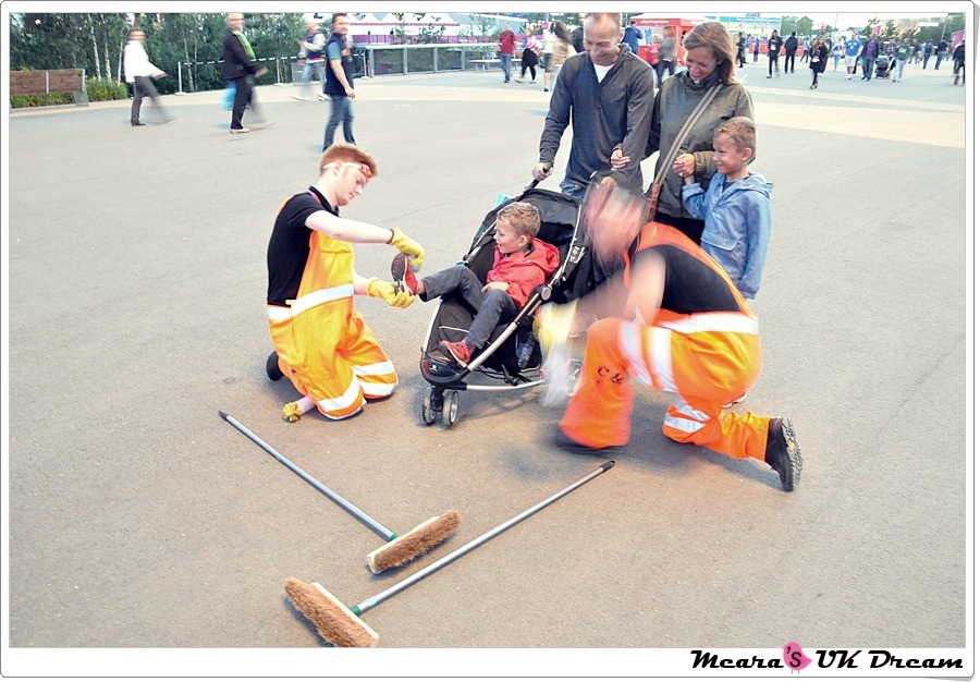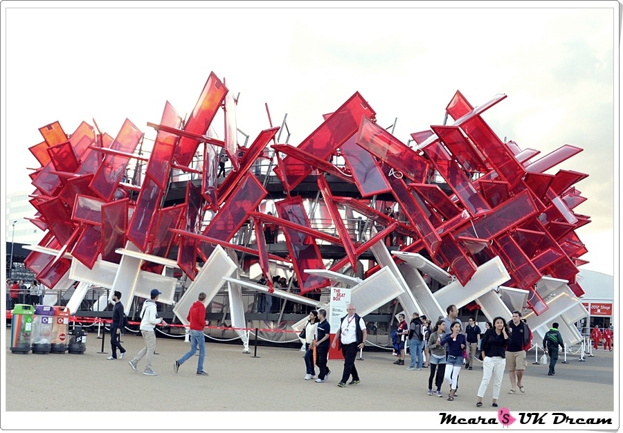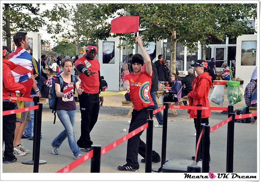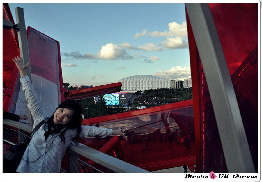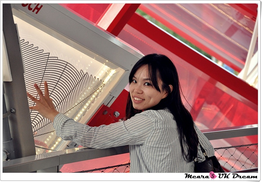 除了限量的奧運紀念瓶之外,在最頂樓的地方還可以和真的奧運聖火合照留念。根據工作人員說今年之所以做成三角形的形狀,是要代表倫敦已經是第三屆舉辦奧運,而聖火棒上8000小洞,則代表了8000個傳遞聖火的跑者,也代表著聖火傳遞的距離有8000英里遠。但是我不要給妳們看我的奧運聖火照哩,那天風大,我穿的襯衫裡面都脹滿了衣服,活像個懷孕的孕婦 XD 總之如果來奧運展館的話,一定要來逛可口可樂的館,真是有拿又有玩!