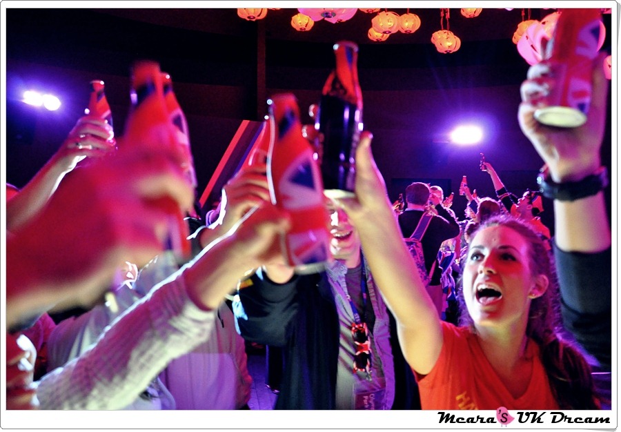 從頭到尾,可口可樂的工作人員帶給參觀的人好多好多的驚喜! 無論是表演的、打招呼的、表演跳舞的、或者是突然從黑黑的背景中冒出來遞給我們奧運限定3度C可口可樂的人(有coke zero和一般可樂的),都讓我們覺得超有趣! 充滿了快樂的能量!
