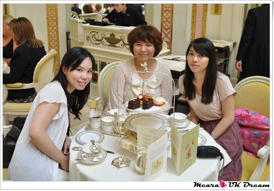 當我們跟Ritz的服務員告知我們要多加一張座位的時候,起先他們婉轉的拒絕說已經沒有位置了,但是之後還是很nice的幫我硬是多橋出了一張,所以我們3個人就圍者一個小小的桌子展開了我們的"假掰貴婦Ritz下午茶"。