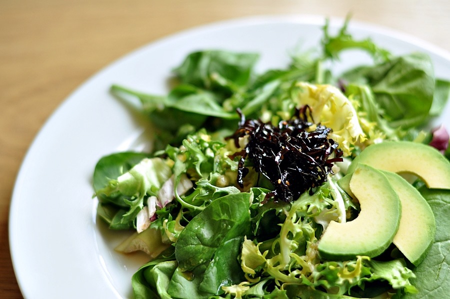 另外在下面這盤有點無聊的莎拉中 (就是莎拉葉加昆布煮),我加入了酪梨。好搭! 應該是說從來沒想到酪梨這麼香,它濃滑的口感就這麼不張揚的包覆住其他的味道,暗暗的增加食物的層次以及溫厚感~真是了不起的一樣食物!