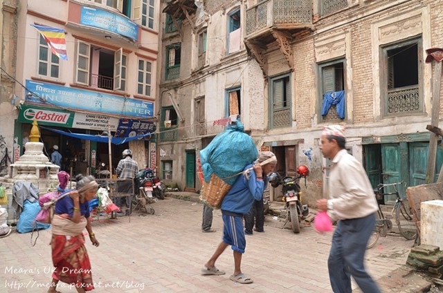 但是尼泊爾不一樣。尼泊爾仍然貧窮、所以沒有麥當勞、百貨公司,許多人仍住在歪歪斜斜的矮房中,每一餐仍是吃爺爺奶奶傳下來的咖哩,男人帶著小帽、女人在額頭上點上紅墨,除了城市中的人做著賣雞、賣鴨的小生意外,大部分的人仍是守著祖傳的農地。沒有太好的生活環境,但這樣的地方讓我感到真實。就算每天都被沒看過品牌的烏賊車燻成大黑臉(從沒看過這麼多印度製的車子),也覺得開心。