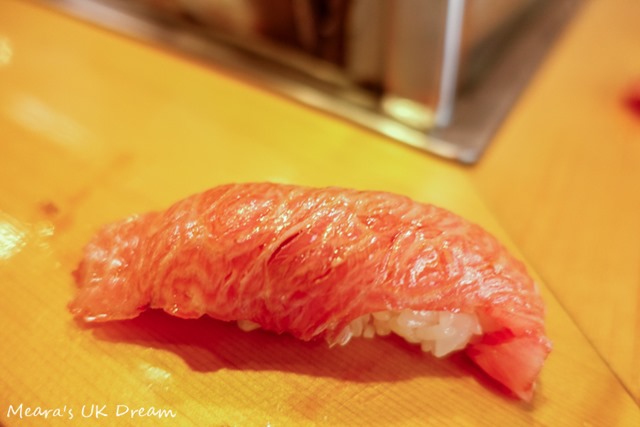 魚:壽司大的魚十分新鮮!因為是江戶前壽司的關係,壽司上面已經沾有醬汁,就算不沾醬油都十分美味,完全不會有魚的腥味,而且能清楚的吃出每塊於不同的味道。